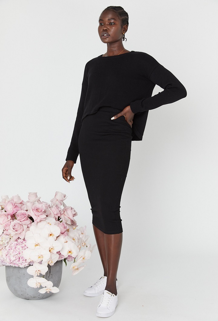 Made in our stretchy ribbed cotton, the Rib Midi Skirt has 'easy elegance' written all over it.